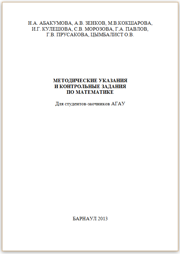 PDF КОНТРОЛЬНЫЕ ЗАДАНИЯ ПО ВЫСШЕЙ МАТЕМАТИКЕ И МЕТОДИЧЕСКИЕ . . .