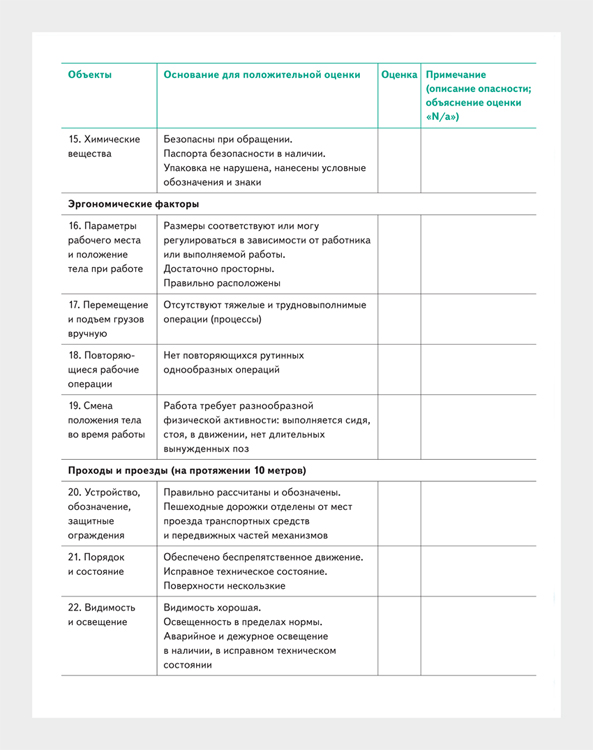 Контрольный лист опасностей