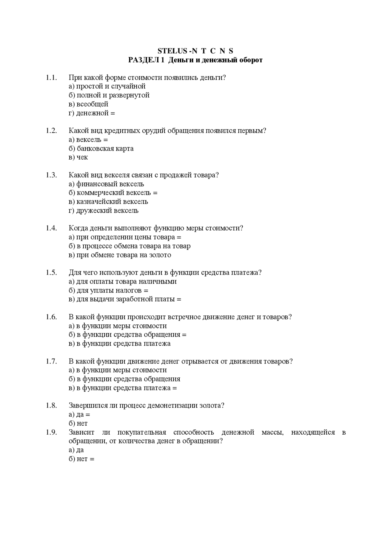 Контрольный тест на знание нор од фт