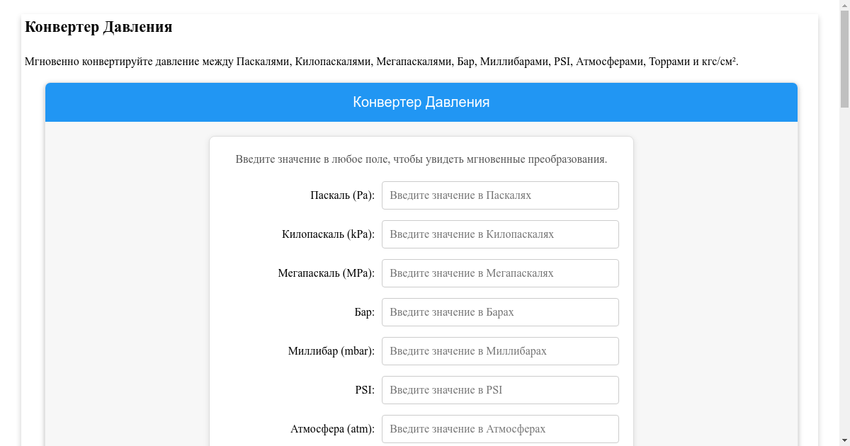 Конвертер давление мпа