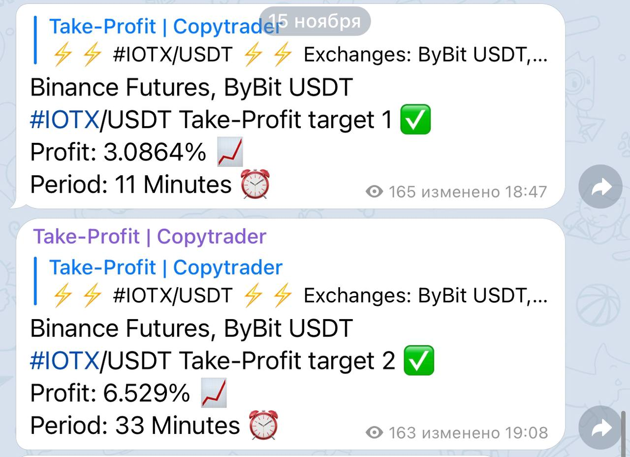 Exchanges: ByBit USDT, Binance Futures (биржи к которым подключен копитрейдер и где доступны эти торговые пары)