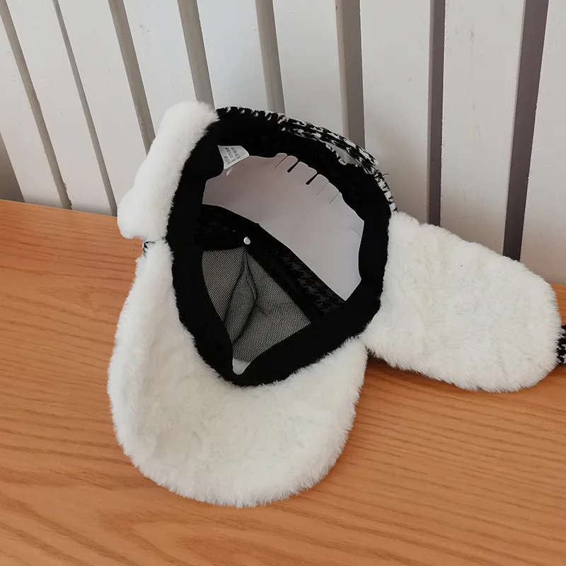 "Korean Autumn Winter Warm Rabbit Plush Baseball Cap Women's British Retro Thousand Bird Case Thickened Ear Protection Hat" * Buy Now Just For 10$
