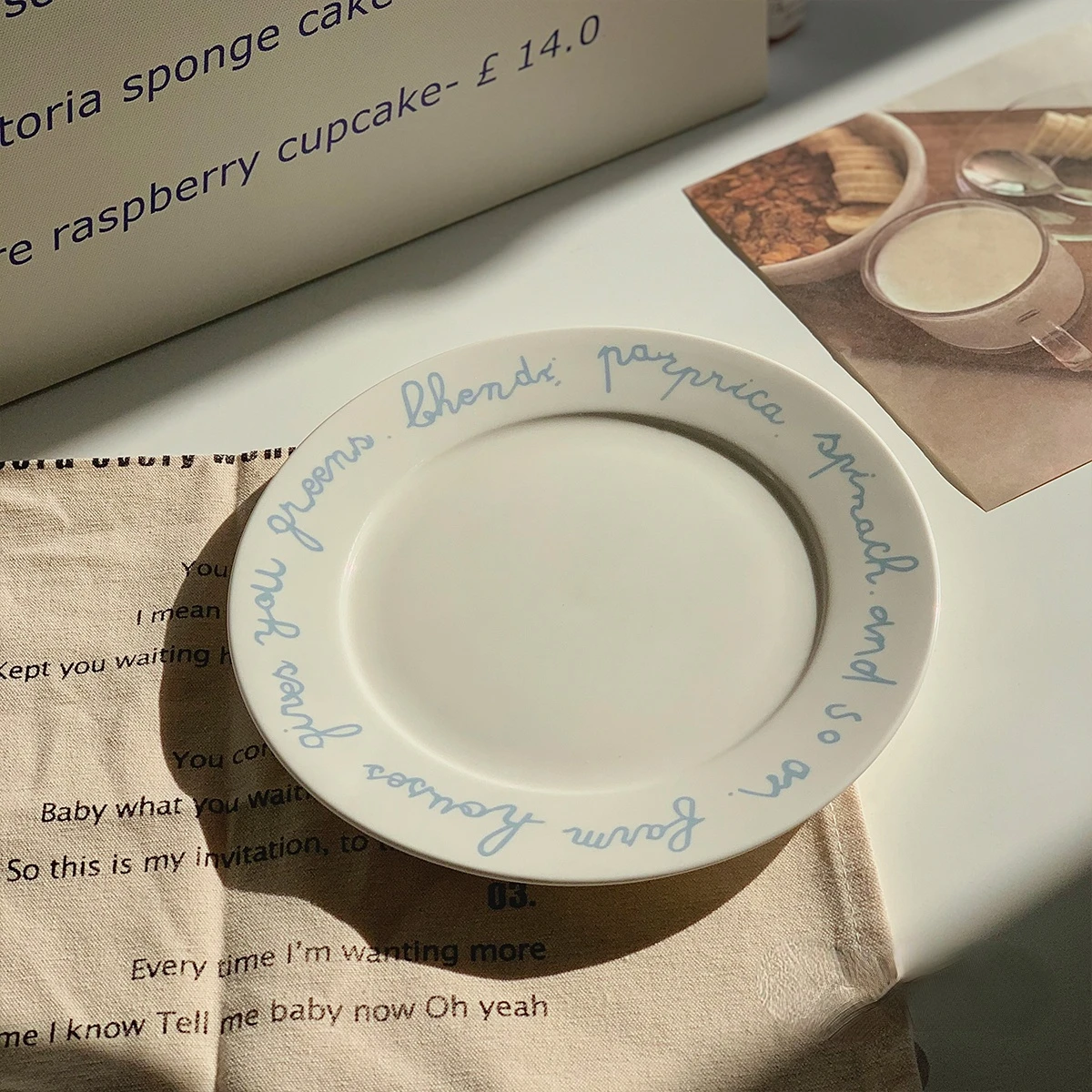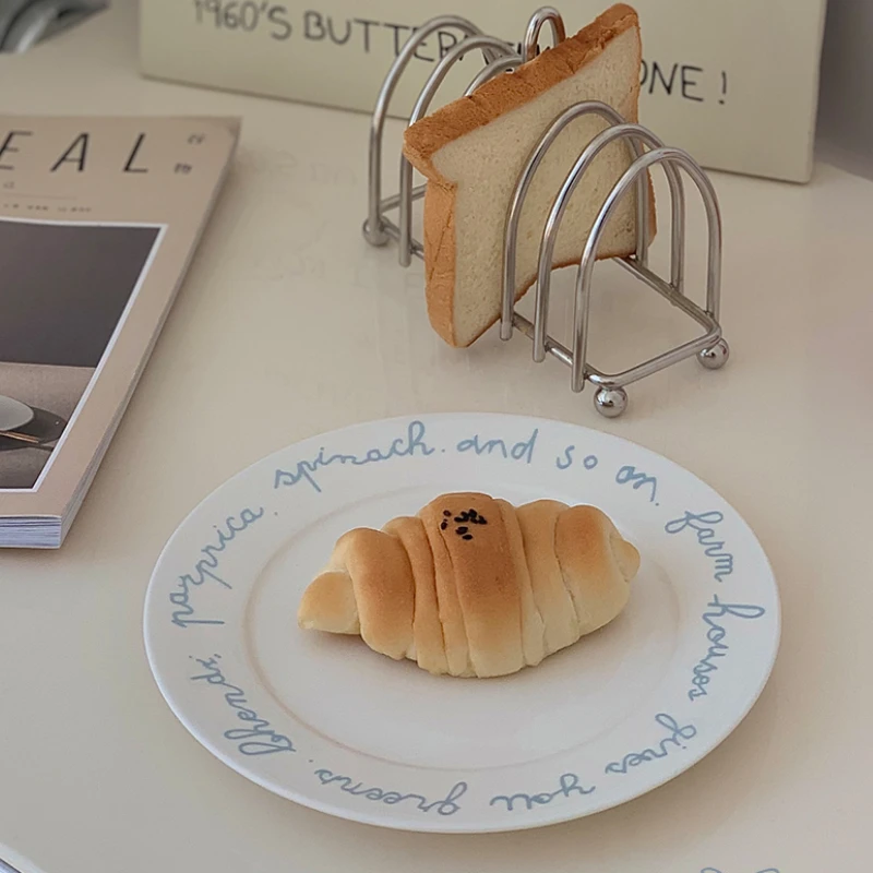 Korean Concise Blue Stripes Brief French Letters Restaurant Ceramic Plate Simple Breakfast Disc Dessert Plate Steak Plate - Купить с бесплатной доставкой