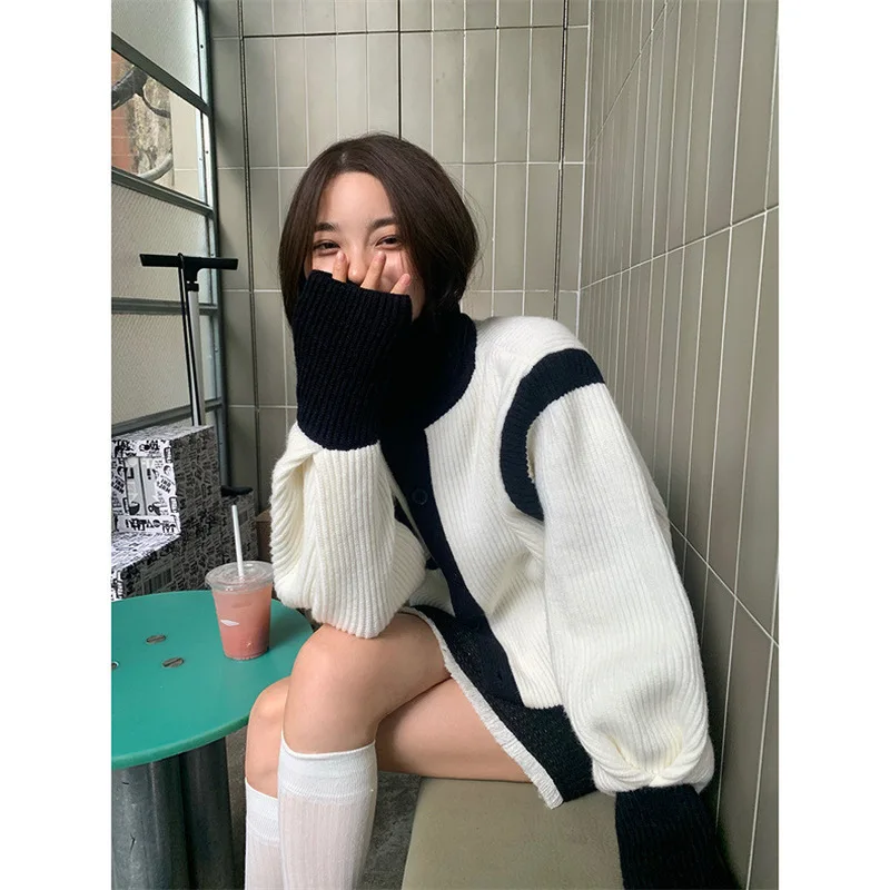 «Korean Contrast Color Turtleneck Sweater Women 2022 Autumn Winter Loose Soft Waxy Lazy Striped Knitted Women Cardigan Jacket Top» по лучшей цене на рынке! Всего за 18$ (1710рублей)