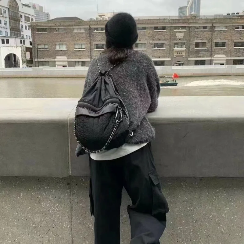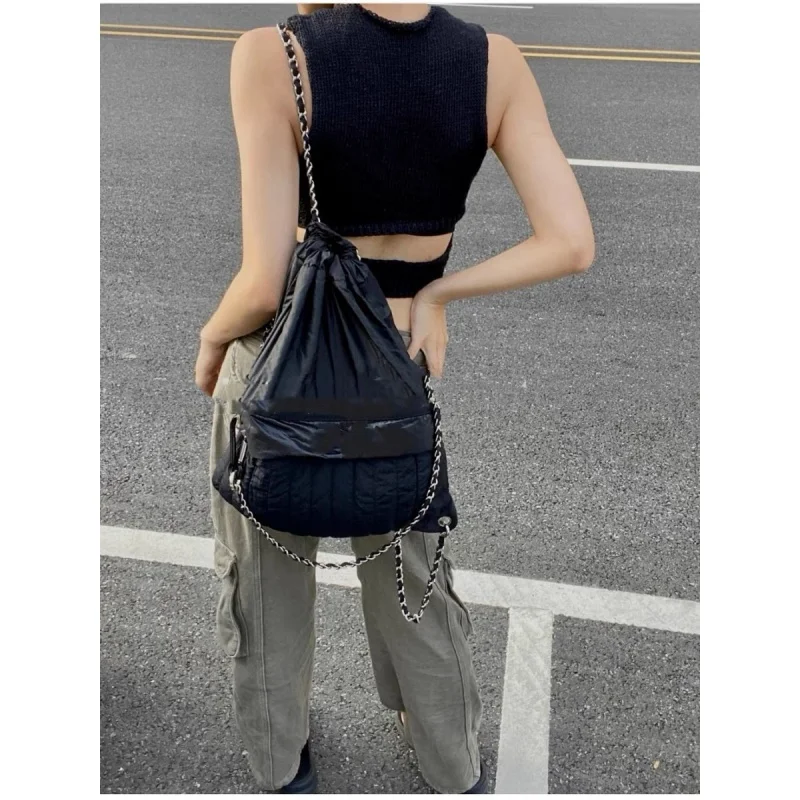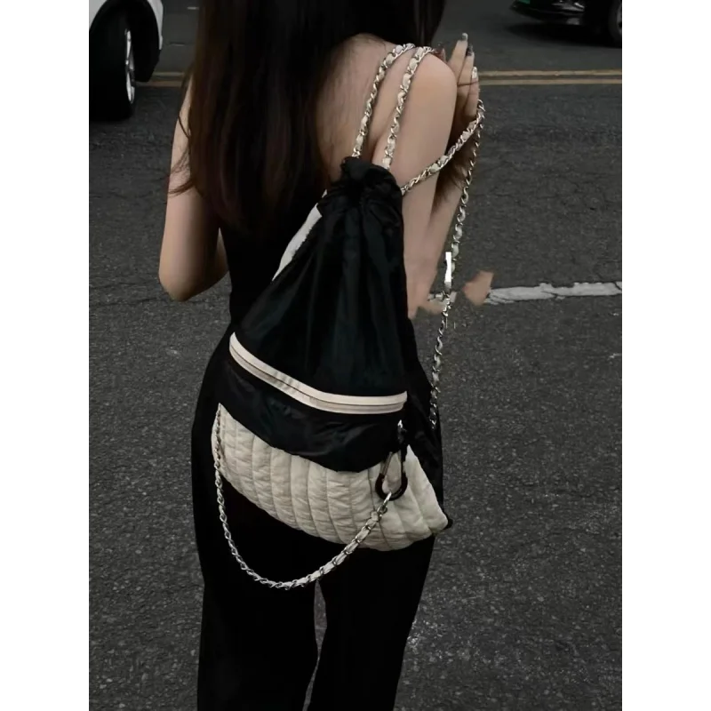 lCcSjihdHHere you can buy Korean Contrasting Color Nylon High Capacity Women Backpack Fashion Chain Simple Shoulder Bag Outdoor Drawstring Backpack with free delivery to your post office.