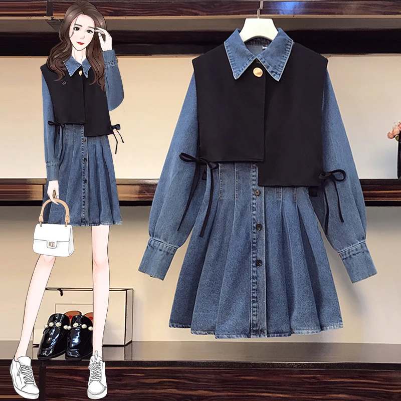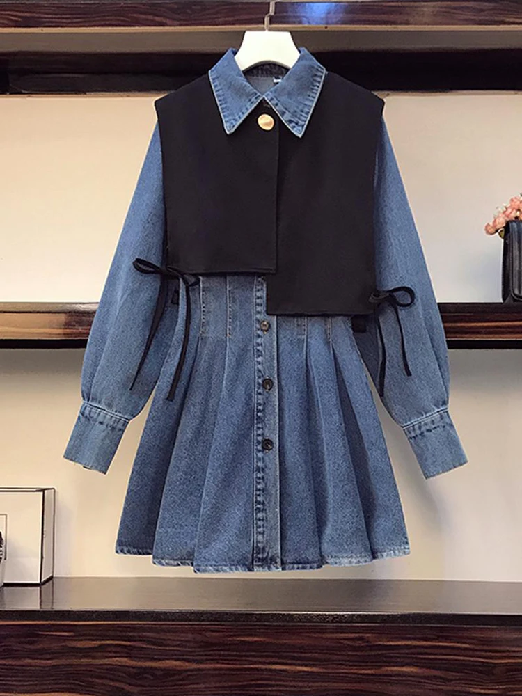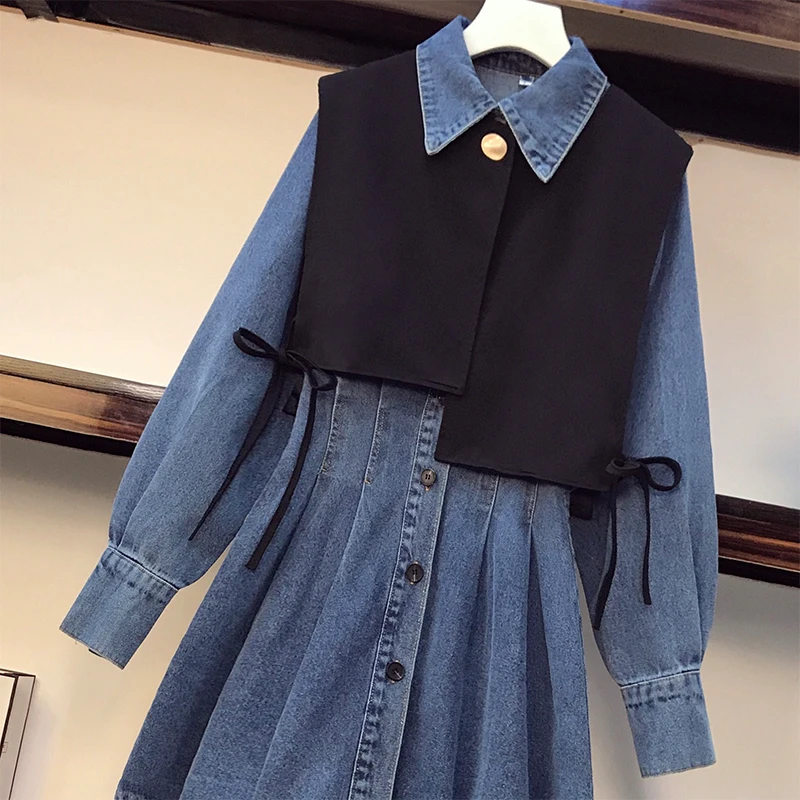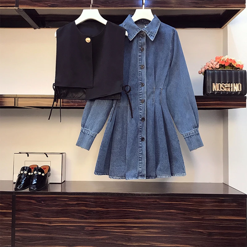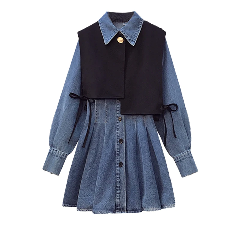 mBmqFeHGIHere you can buy Korean Style Spring Fall Women's Two-Pieces Sets Irregular Solid Color Waistcoat Turn-down Collar Single Breasted Denim Dress with free delivery to your post office.