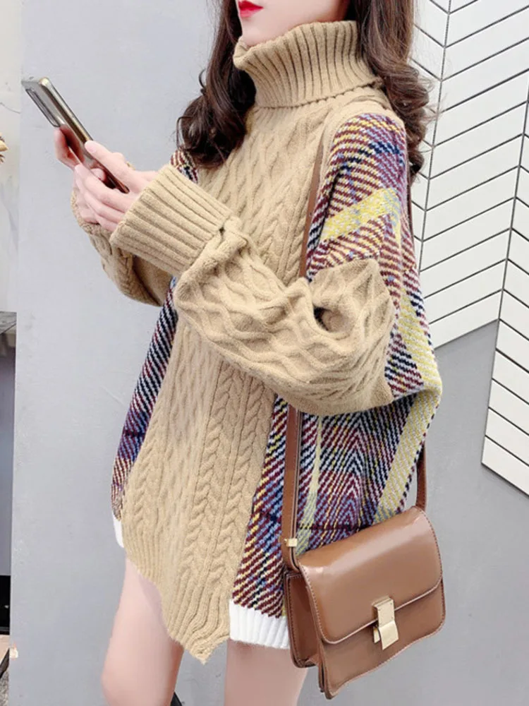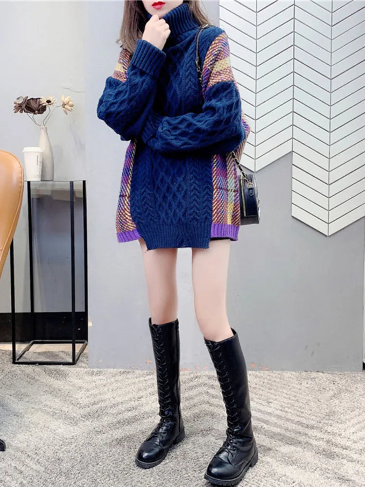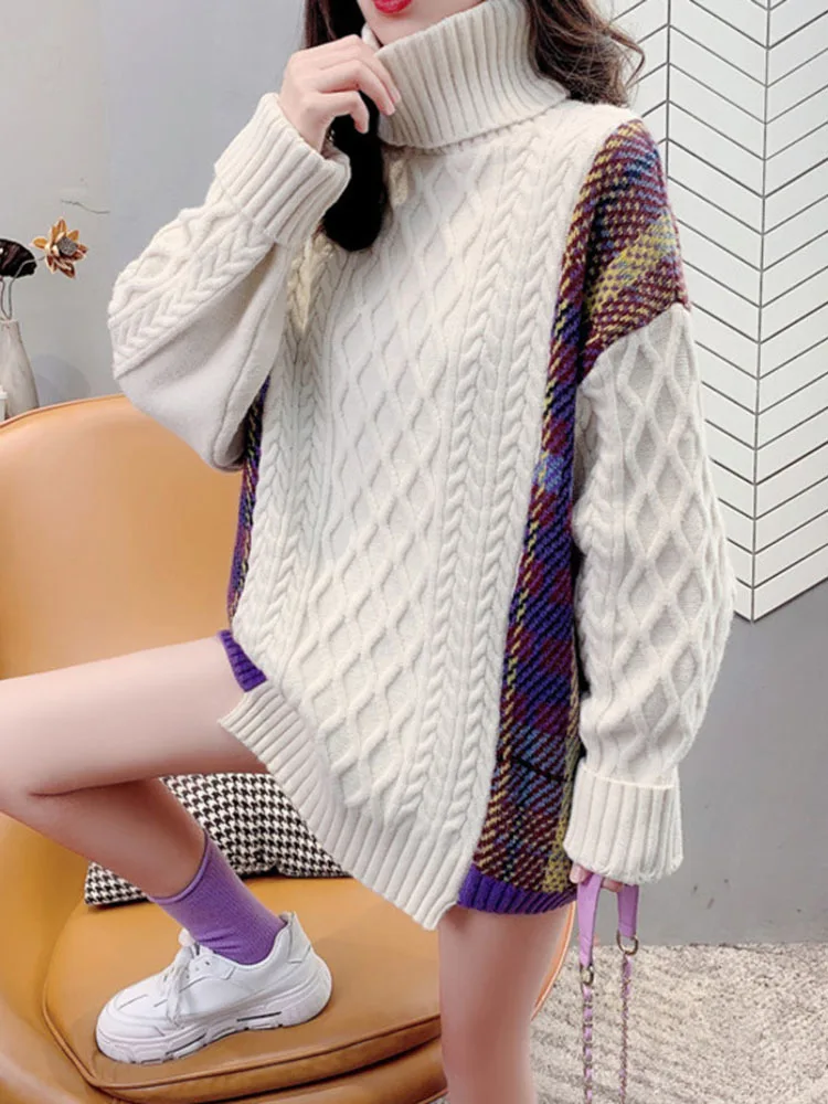 VyhEqmnHNXДолго искали Korean Style Women's Knitted Sweater Turtleneck Splicing Color Oversized Trendy Pullover Warm All-match Top Street Style New, но не могли найти? Предоставляем вашему вниманию Korean Style Women's Knitted Sweater Turtleneck Splicing Color Oversized Trendy Pullover Warm All-match Top Street Style New по лучшей цене на рынке!
