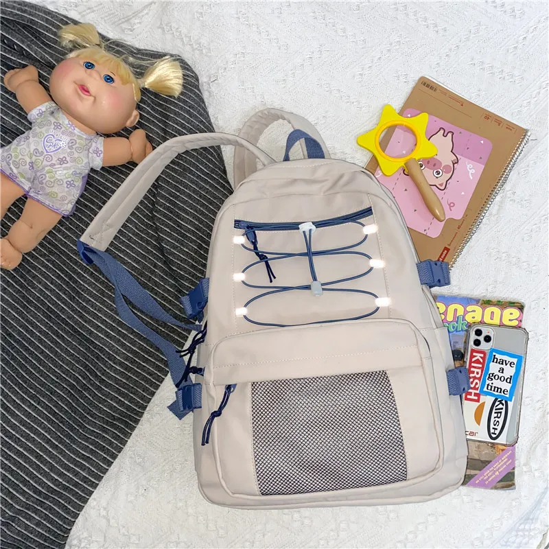 Korean Version Of High School Students Backpack Junior High School Students Wear Rope Net Reflective Backpack - Купить с бесплатной доставкой