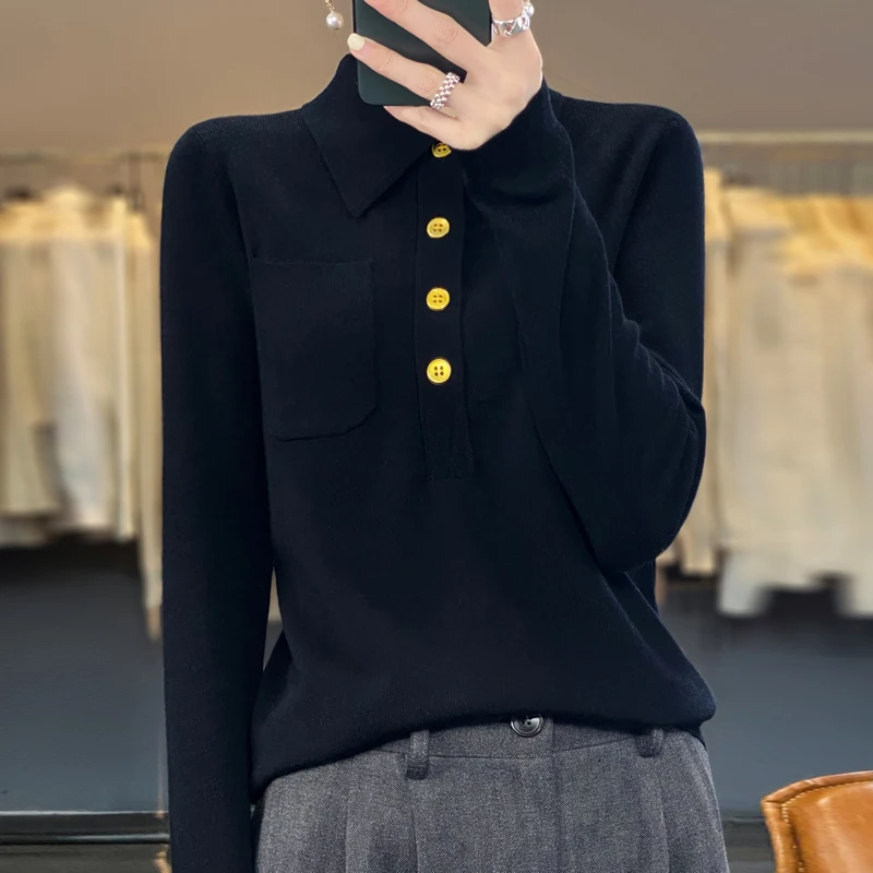 «Korean Version Of Simple Polo Collar Commuting Long-Sleeved Knit Style Underlay Women's Pure Wool Sweater 2023 Spring Autumn New» по лучшей цене на рынке! Всего за 24$ (2280рублей)