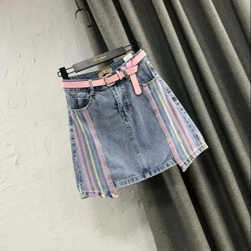 hVCoOLFCsLooked for Korean Version of The Color-blocking Striped Plus Size Denim Skirt Female New High Waist Korean A-line Package Hip Skirt for a long time, but could not find it? Bring to your attention Korean Version of The Color-blocking Striped Plus Size Denim Skirt Female New High Waist Korean A-line Package Hip Skirt with the best price!