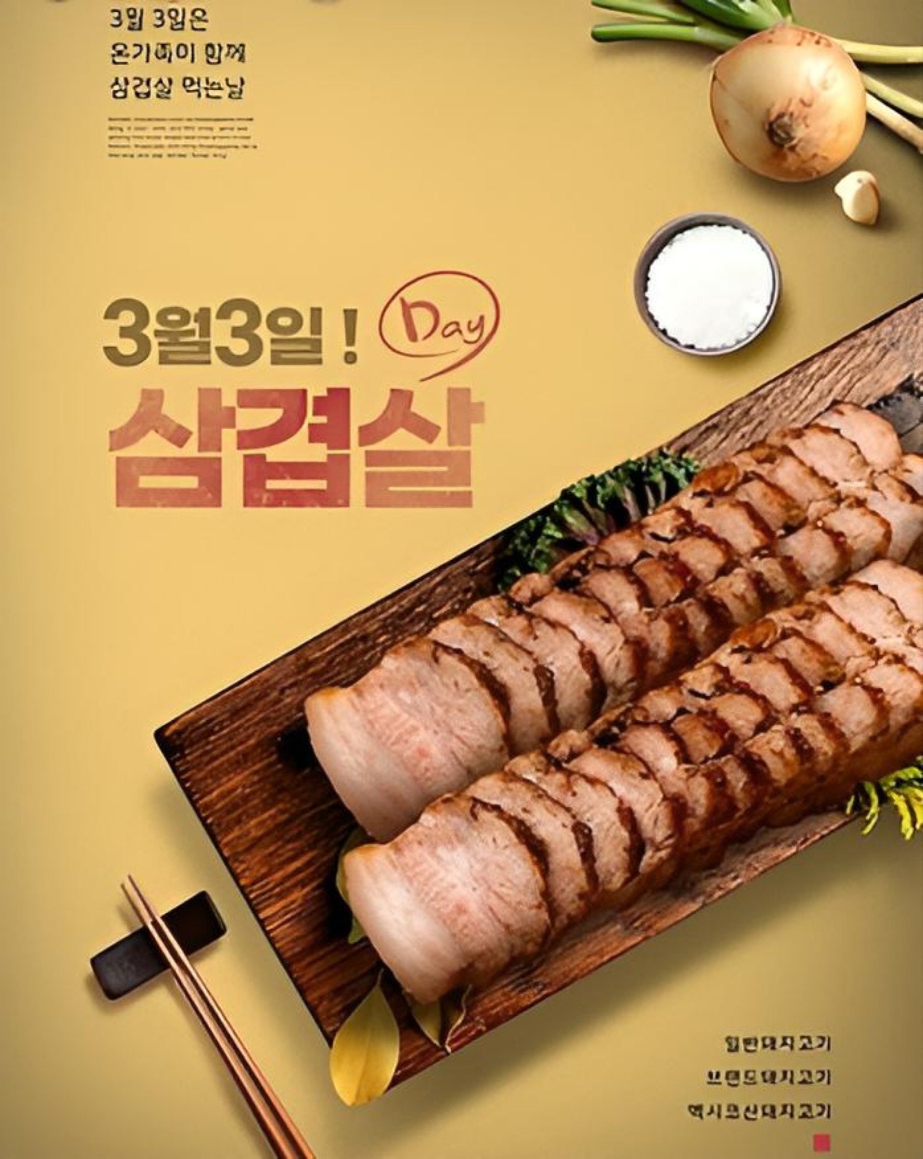 Появился в конце 1990-х годов для поощрения потребления самгёпсаля - остатков брюха и жирного мяса, оставшихся после экспорта в Японию относительно дорогих филейных и вырезных частей. Это можно рассматривать как своего рода пропаганду.