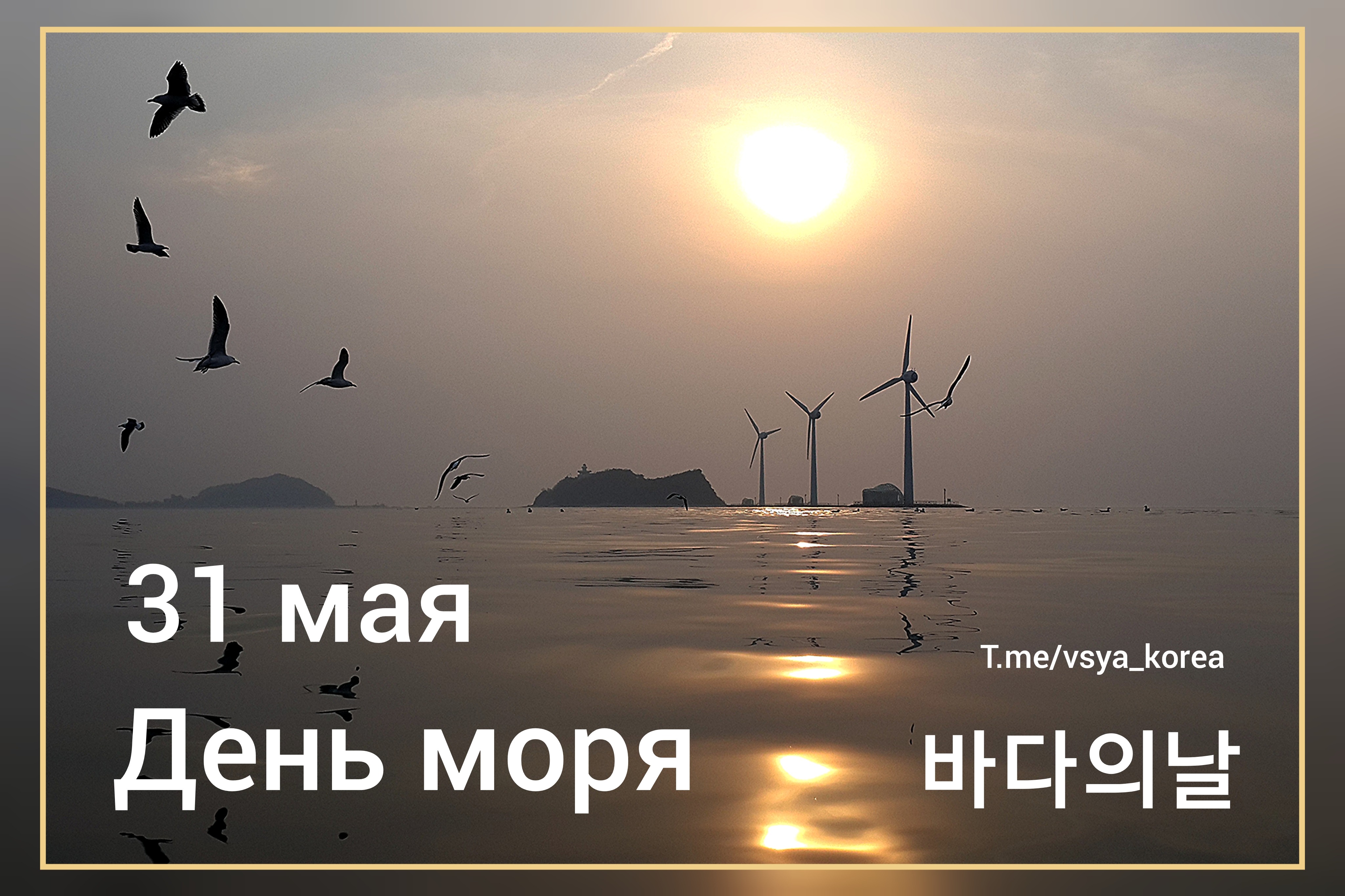 День Моря (바다의날). Этот день был учрежден Министерством морских дел и рыболовства Респ. Корея в 1996 году в целях повышения значимости проблем сохранения водной экосистемы и прочих морских дел.
