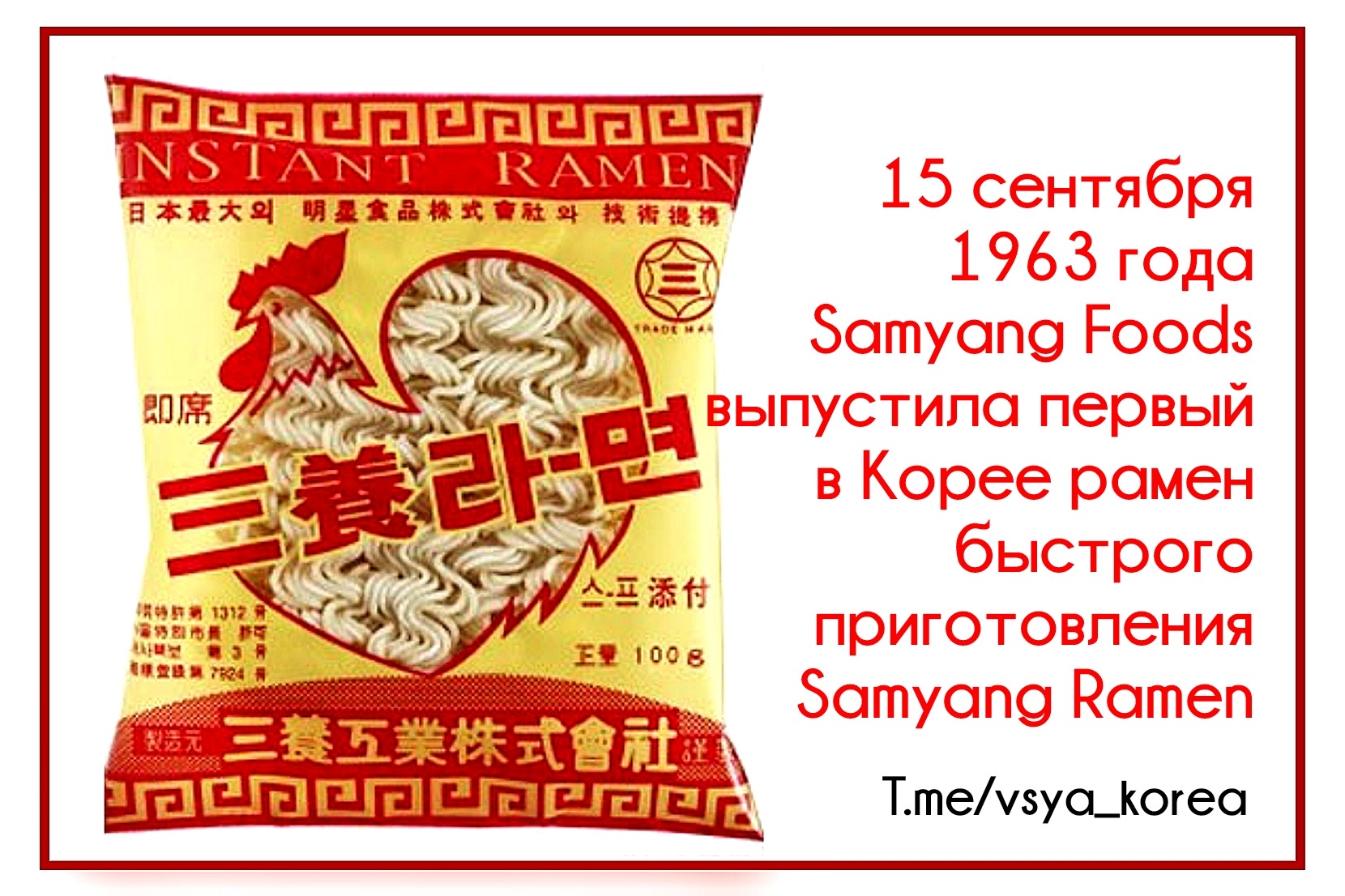 1963 - Samyang Foods выпустила первый в Корее рамен быстрого приготовления Samyang Ramen
