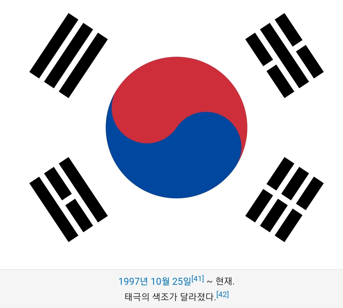 1997 - Цветовой тон флага Тэгыкги был изменен.
