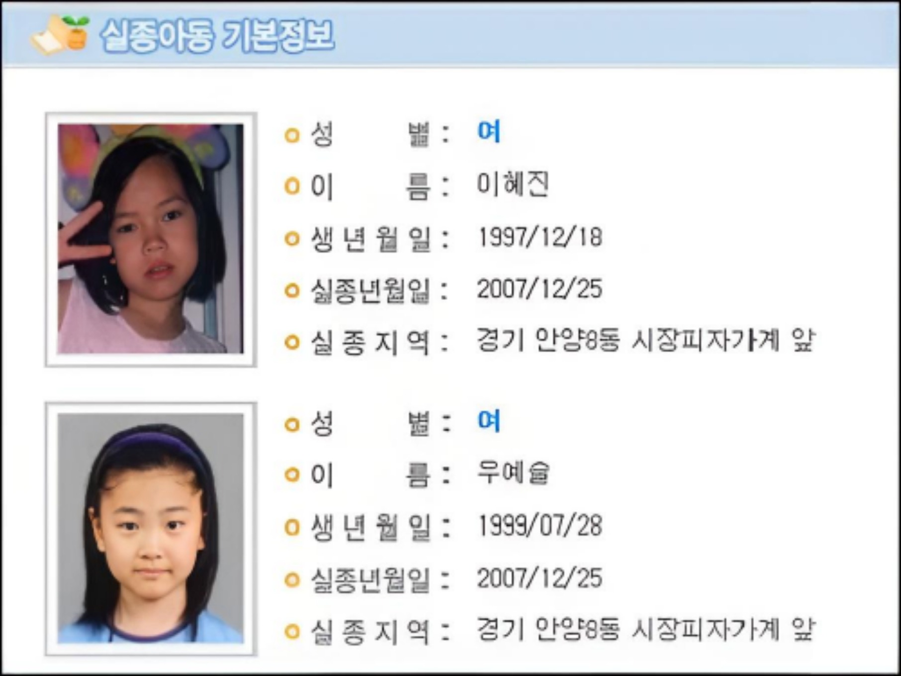 2007 - Произошел случай похищения и убийства 8-ми и 10-летних учениц начальной школы Аньяна. Тела жертв были обнаружены в марте 2008 года следующего года, что шокировало общественность, а возникшая в результате проблема безопасности детей стала самой большой проблемой на выборах в Национальное собрание 18-го созыва.