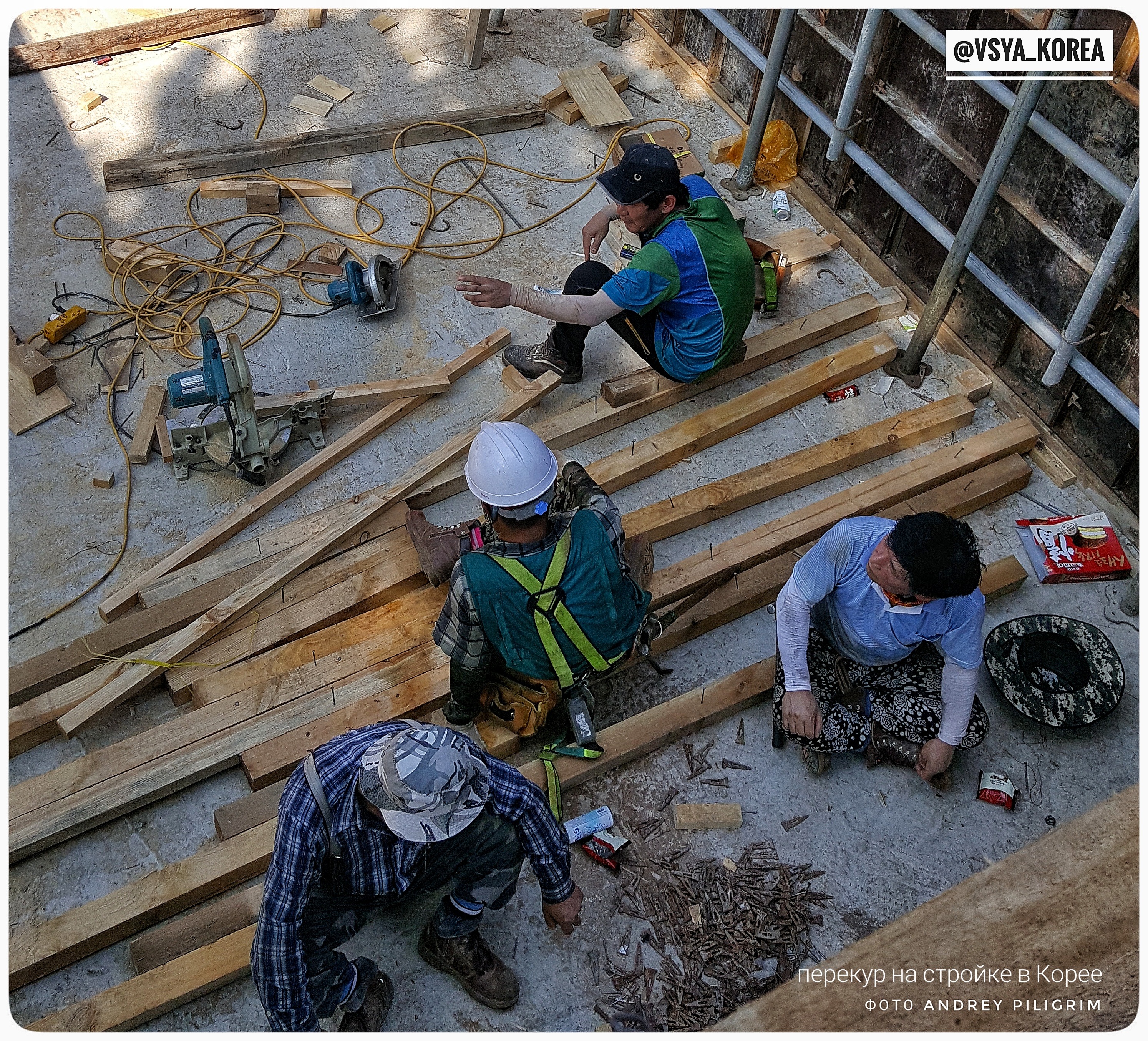 Я сменил порядка десяти рабочих бригад за два года пребывания в Корее и могу сделать некоторые выводы касательно образа построения рабочего процесса. В отношениях между работниками, везде была жесткая армейская субординация, переплетенная с восточной культурой почитания возраста. К примеру молодой по возрасту работник мог очень вежливо и в то же время резко отчитать младшего по должности, но старшего по возрасту, не переходя на личности и в очень уважительной форме.