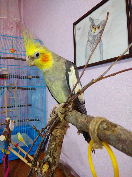 Приступы у кореллы . Обычно тихая птица, но ближе к вечеру раздался громкий крик . Я подошла проверить, но серьезно не восприняла, вдруг, лапка застряла меж