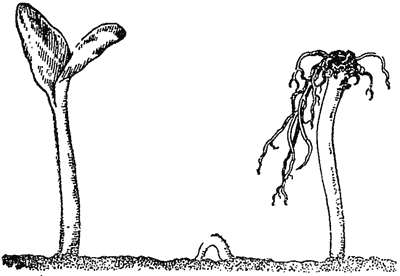 Корень растет в вниз