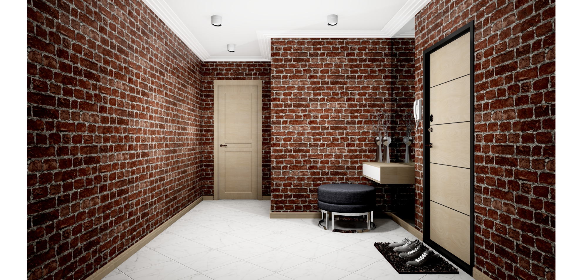 Коридор обои кирпичиком