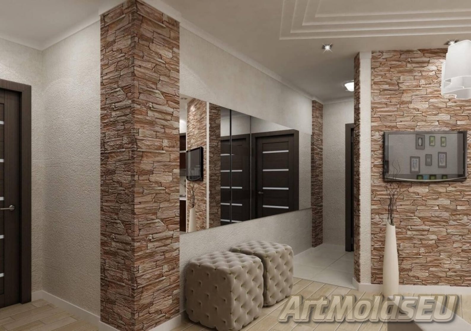 Коридор обои кирпичиком 144 фото