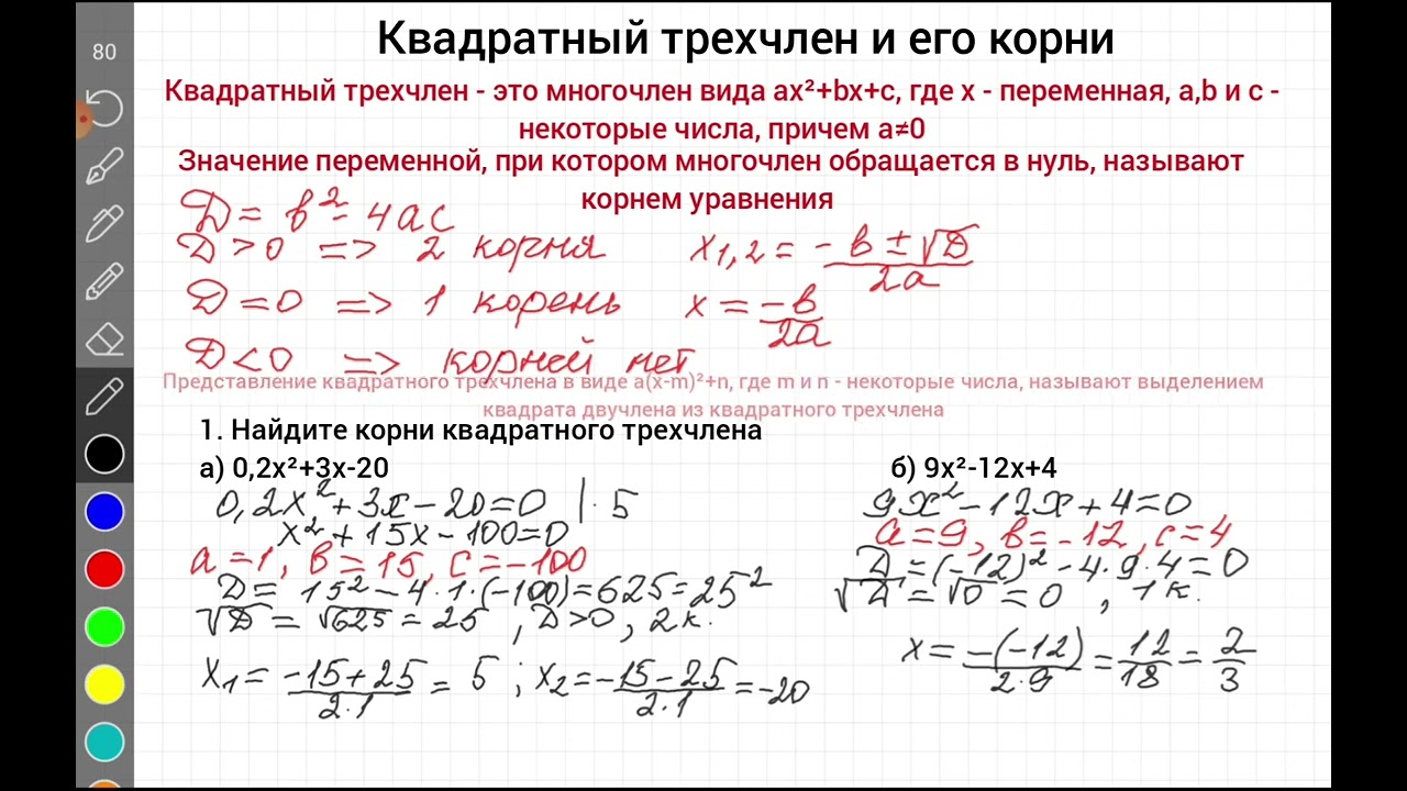 Корни трехчлена формула 96 фото