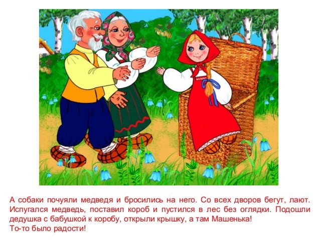 Сказка маша и медведь картинки для детей . . . достала большой-пребольшой короб и говорит медведю: — Вот, . . . Испекла пирожки и попросила медведя отнести их в коробе дедушке с бабушкой .