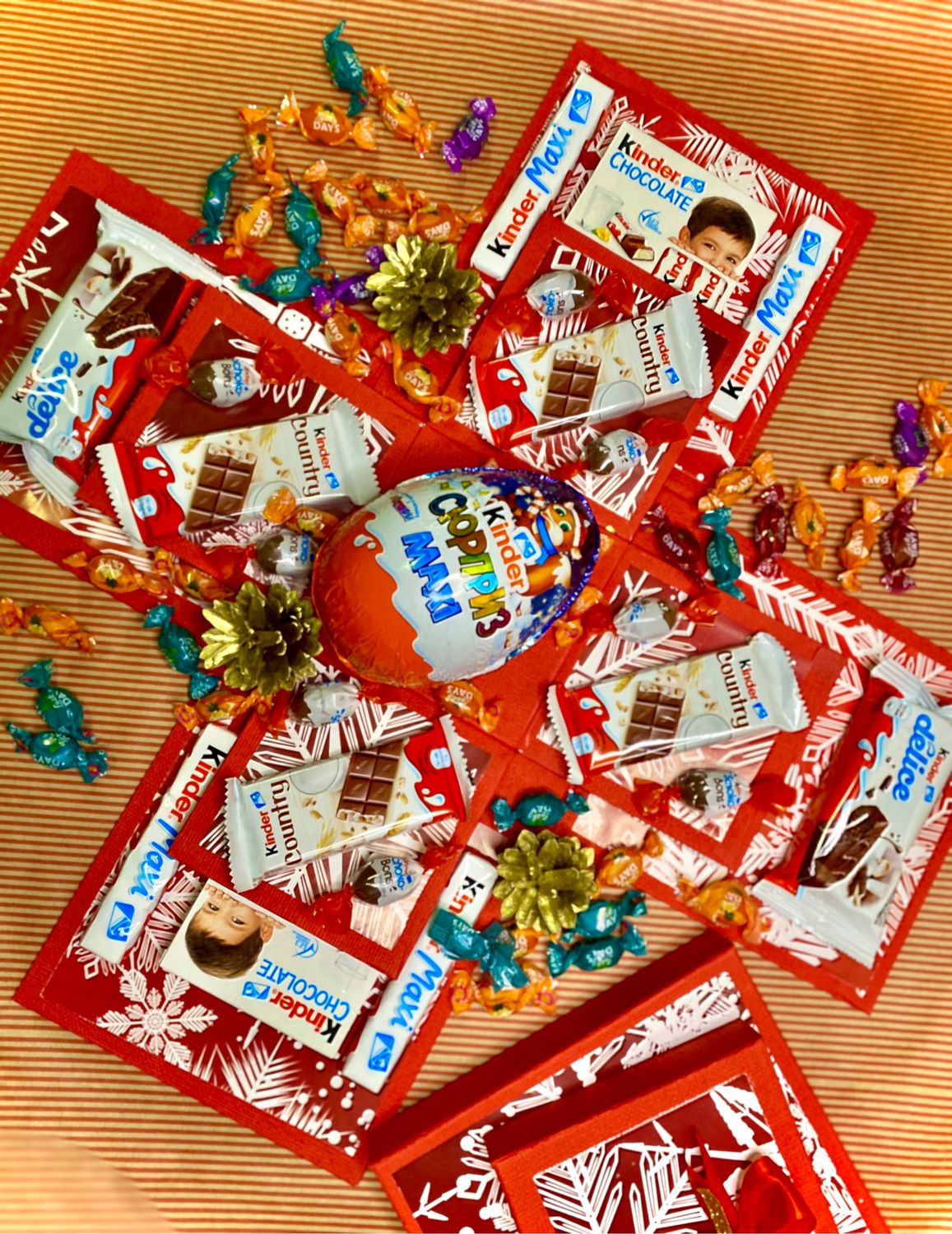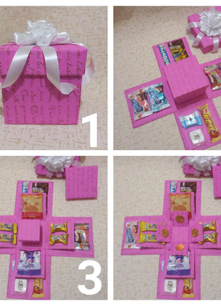 Прекрасный подарок на любой праздник! Можно закрепить любимые сладости, можно — фотографии, милые записочки и подарки . В общем, все то, что вы хотите подарить дорогому человеку . Восторг при открытии каждой коробочки обеспечен .