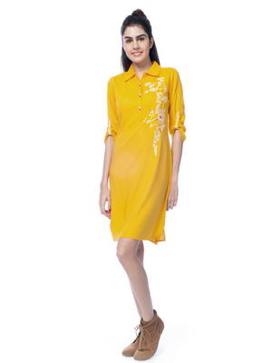 Короткое платье-рубашка из хлопка, цвет пшеничный ...