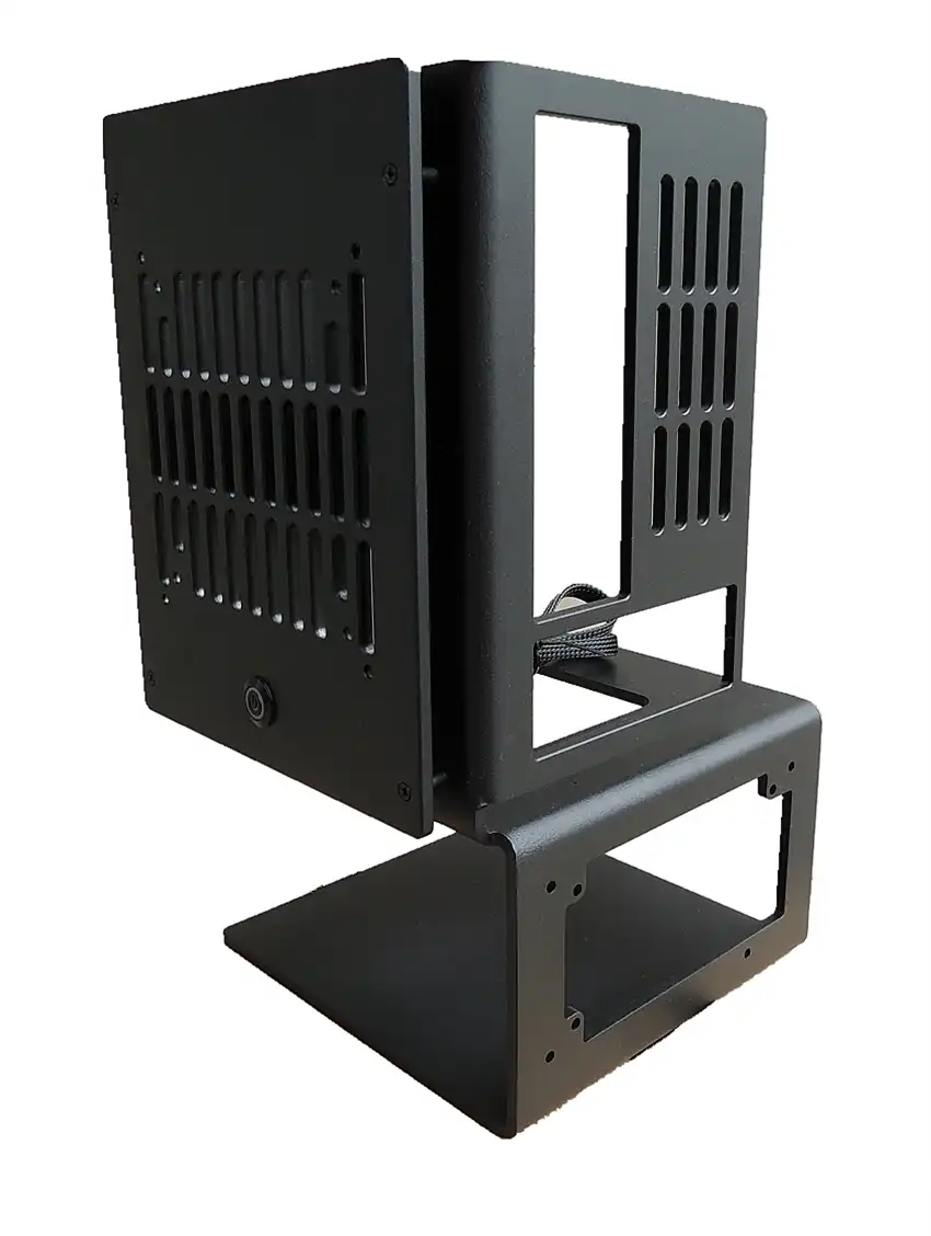 Приехал корпус в хорошей картонной упаковке, размеры 355х234х76мм . Комплектация: корпус, набор винтов и vesa крепление . Есть комплектации с блоком питания на 12В . Внешний вид .