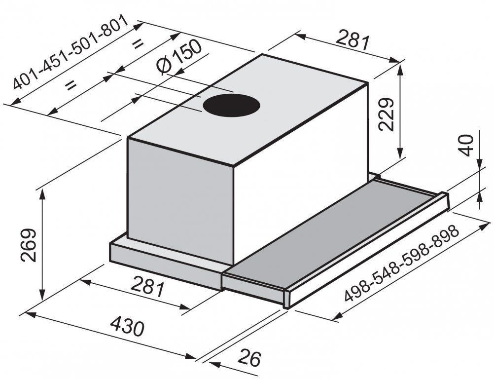 Корпус встраиваемой вытяжки