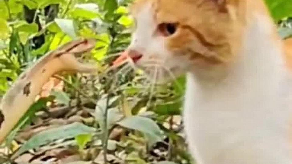 Кошка боится змей