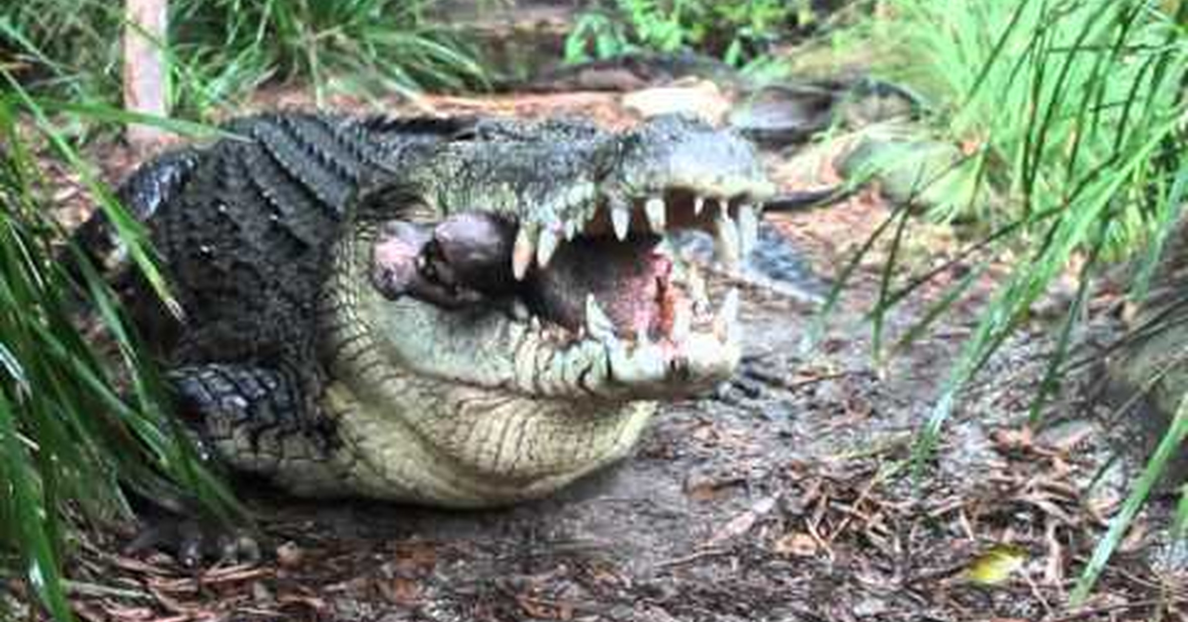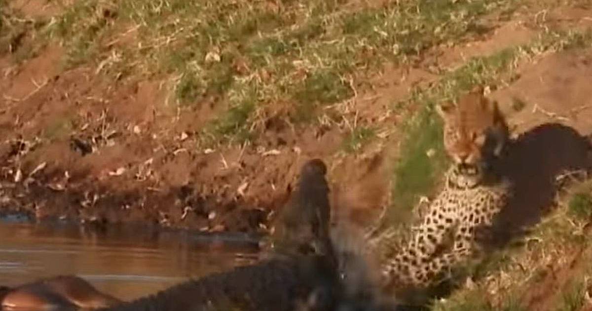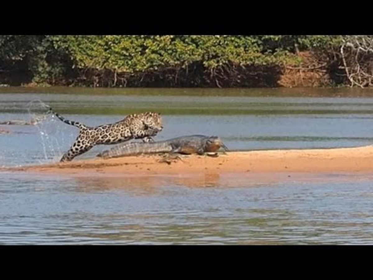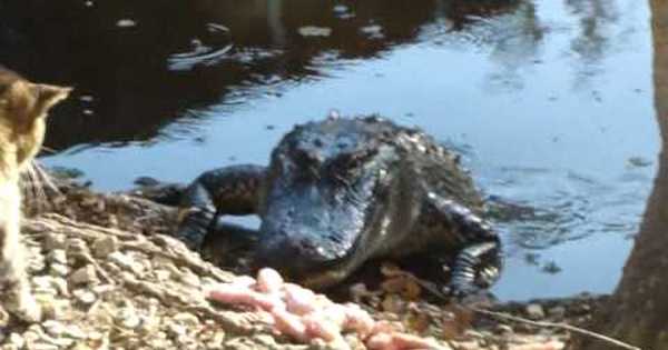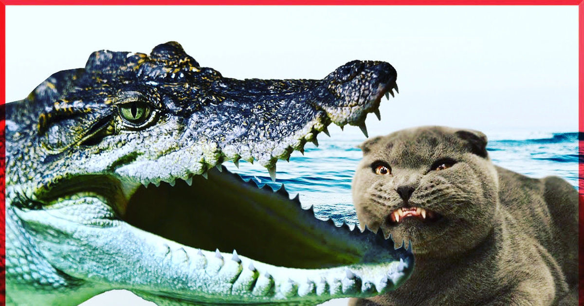 Кошка напала на крокодила