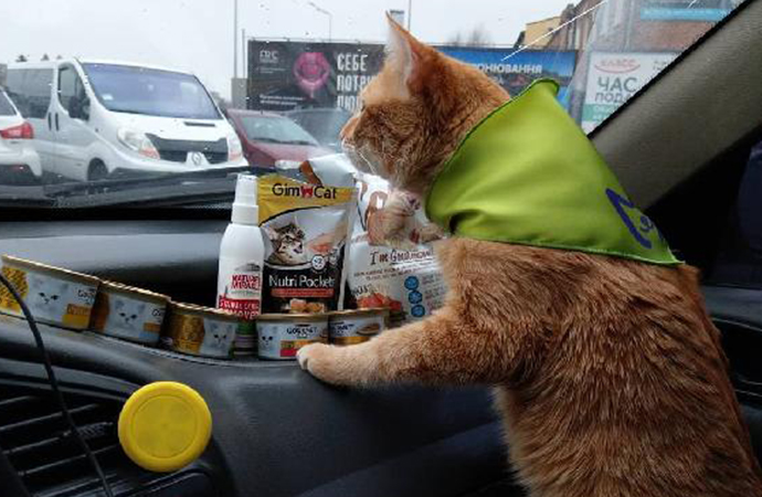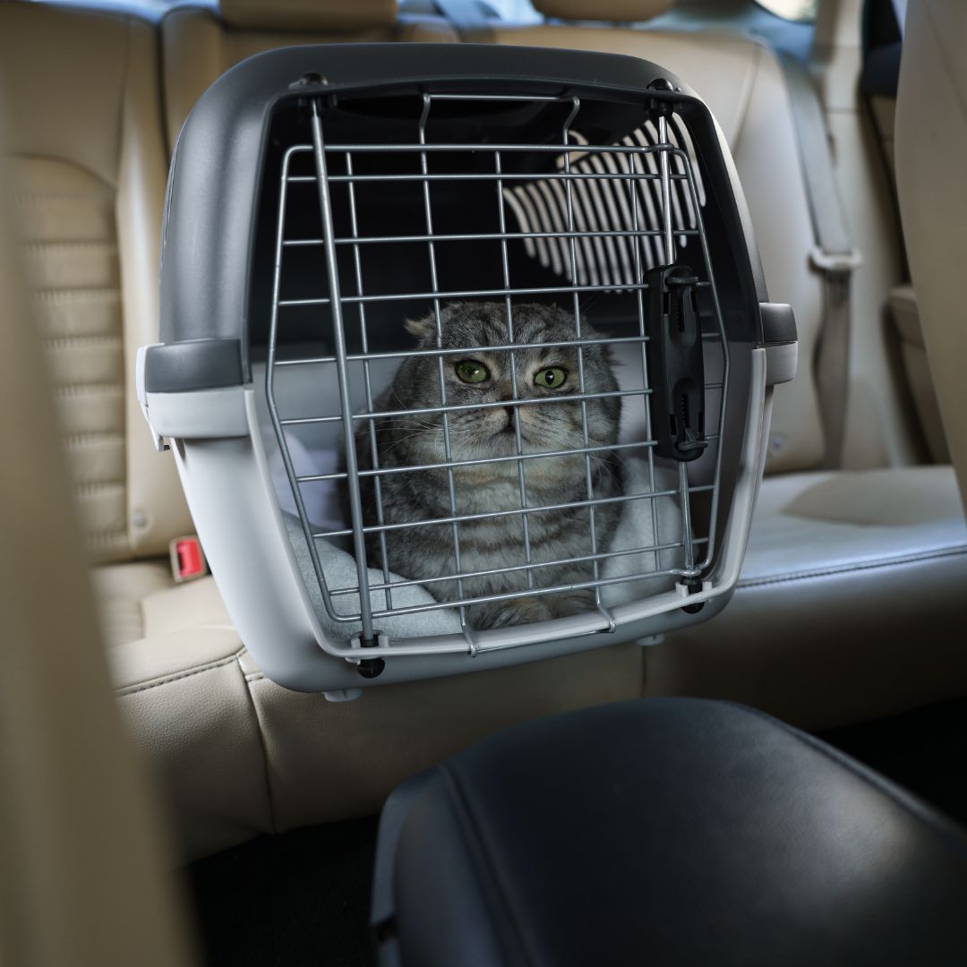 Кошка в переноске в такси