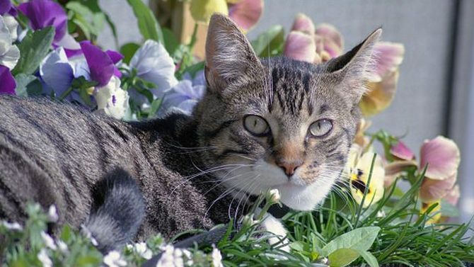 Кошка за ней коты