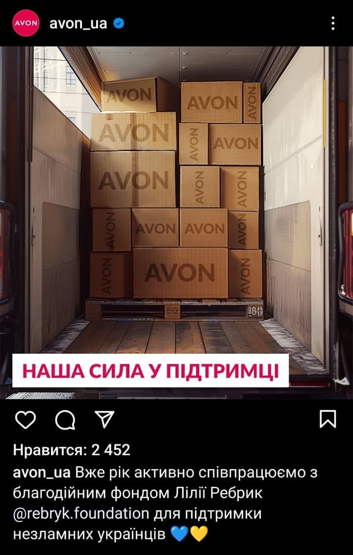 В то время как украинское подразделение Avon напрямую и через различные фонды поддерживает ВСУ, очевидно, поддерживает и террористов из РДК*.