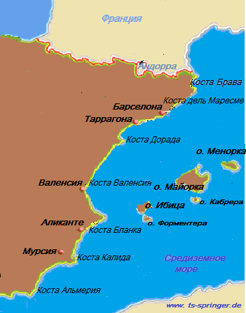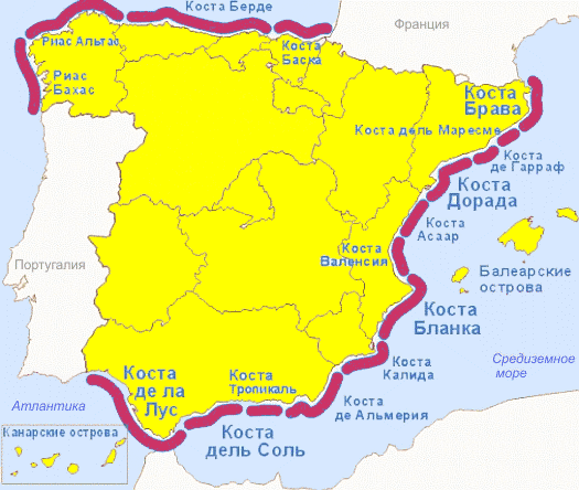 Косты испании на карте