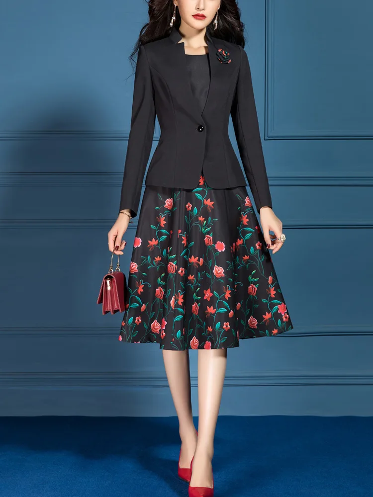 Костюм с юбкой цветы