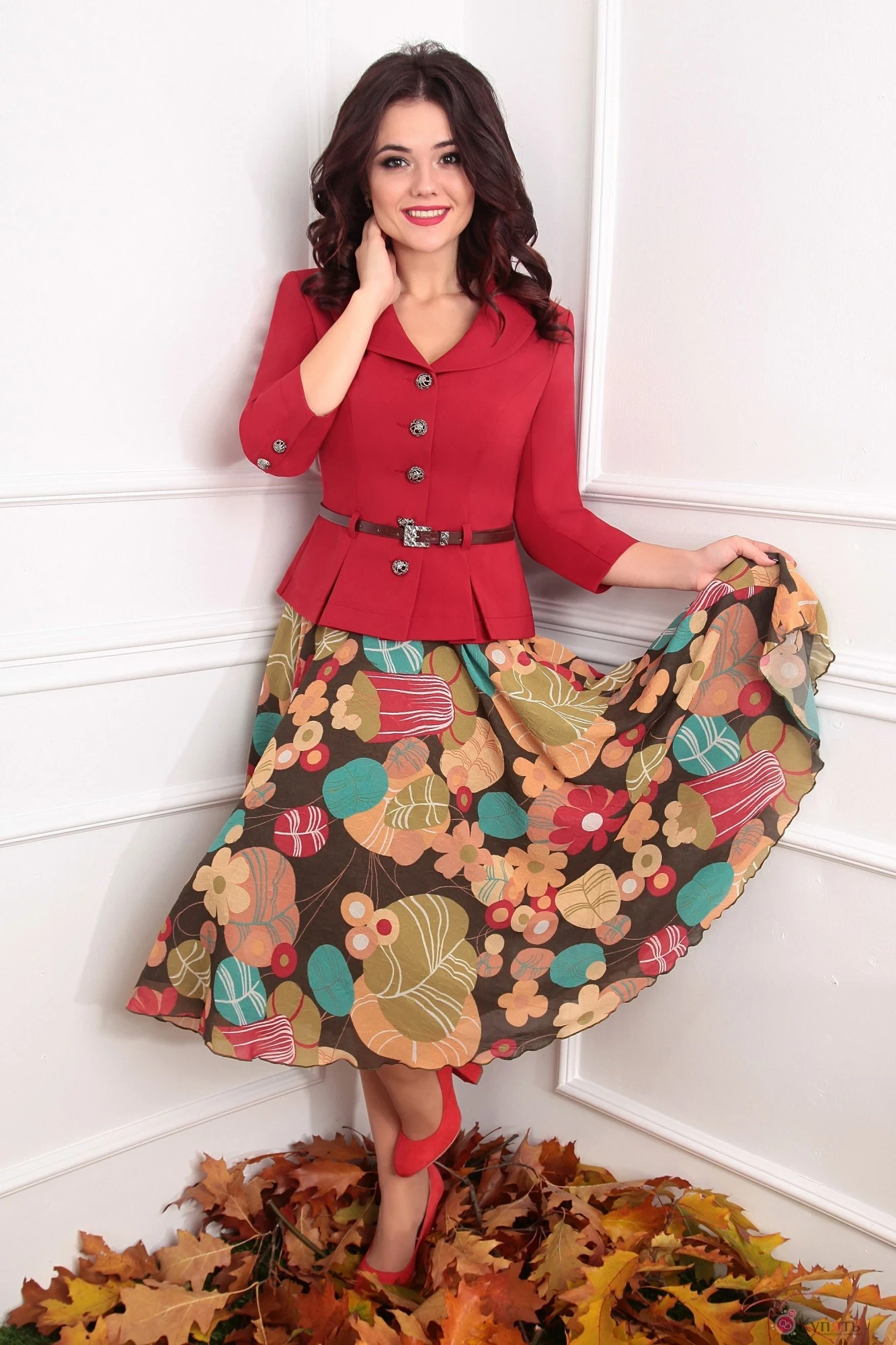 Костюм с юбкой цветы 86 фото