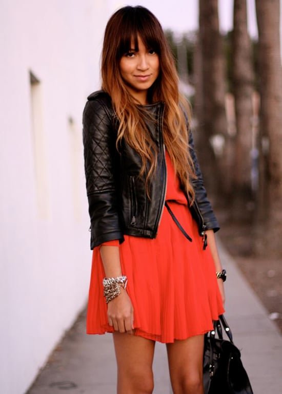 Стоит ли сочетать косуху с платьем, решать вам: смотрим и делимся мнением . А мы предлагаем вам интересные фото модных образов косухи с платьем . Луки с косухой: косуха + плиссированная юбка