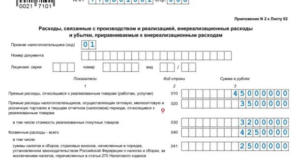 Косвенные расходы строка 040