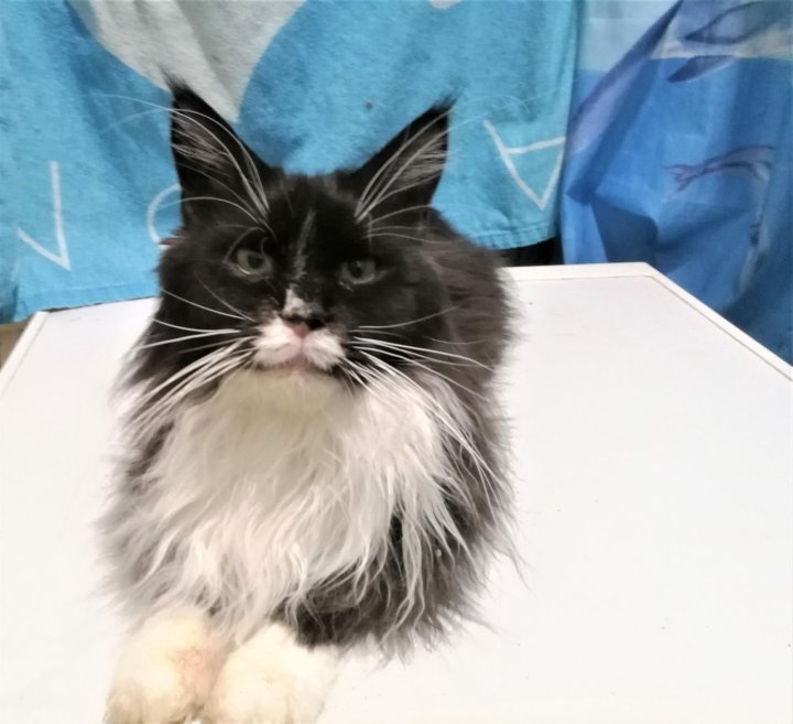 Окрас представлен в широкой цветовой палитре, но чаще всего встречаются чёрные с белым мейн-куны . Британская кошка - история происхождения, описание породы, шерсть, вязка, уход + 84 фото . . .