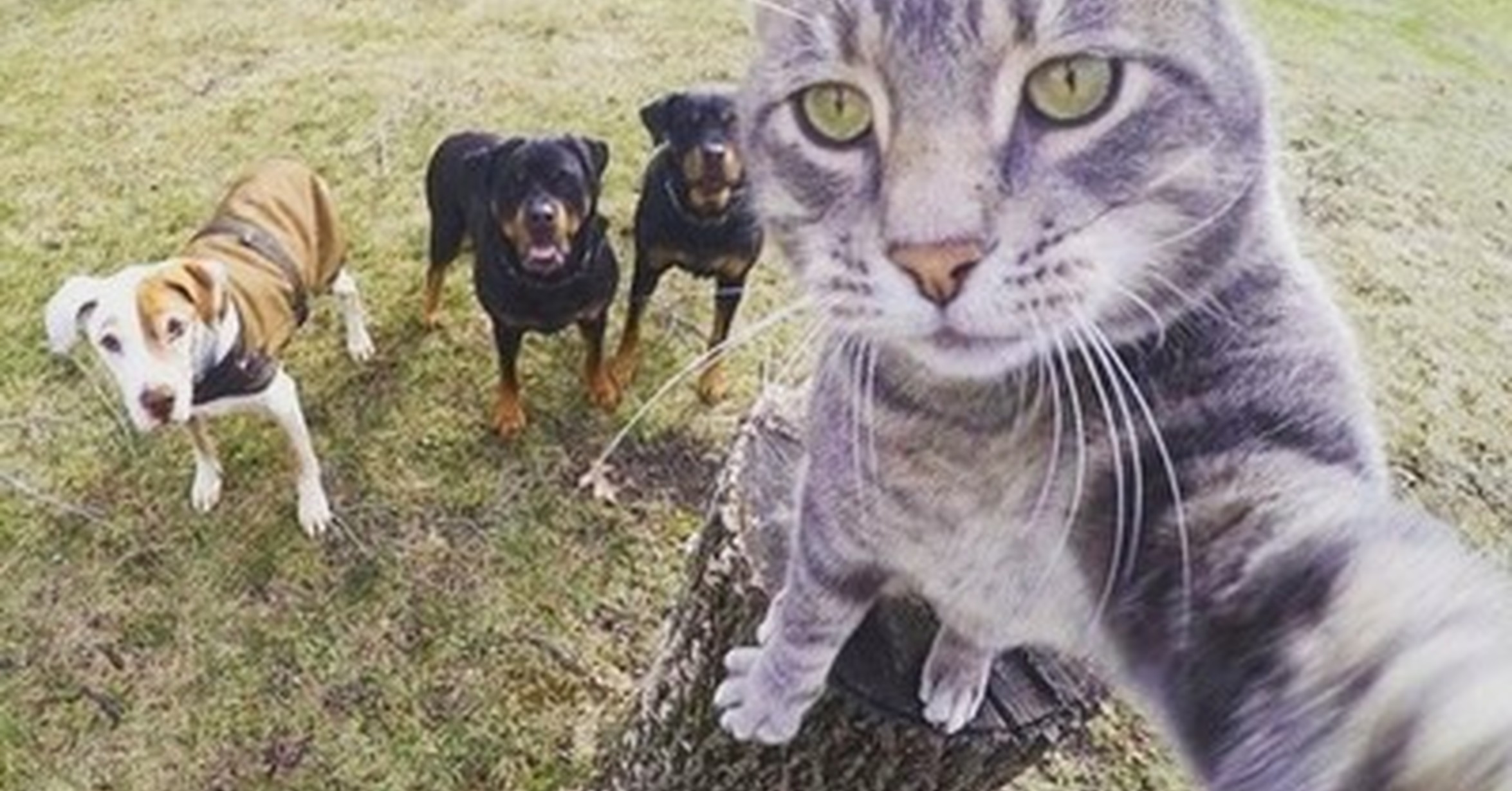 Кот держит собак
