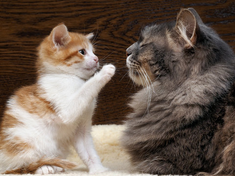 Кот играет с кошкой