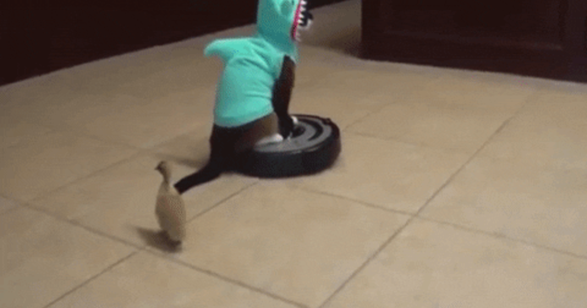 Кот катается на пылесосе 82 фотографий