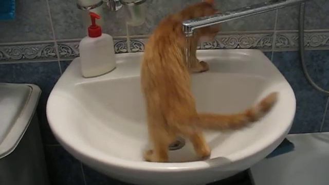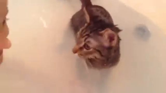 Кот купается в ванной
