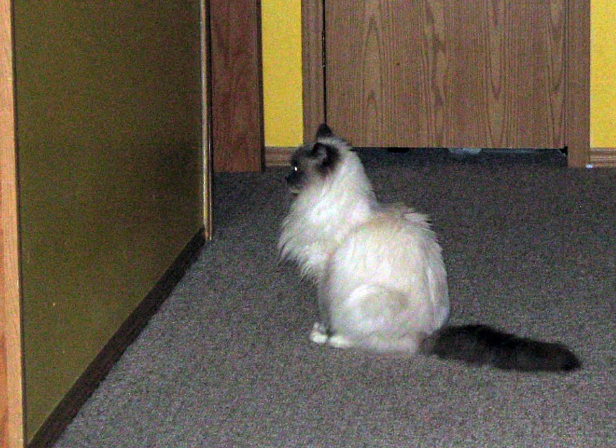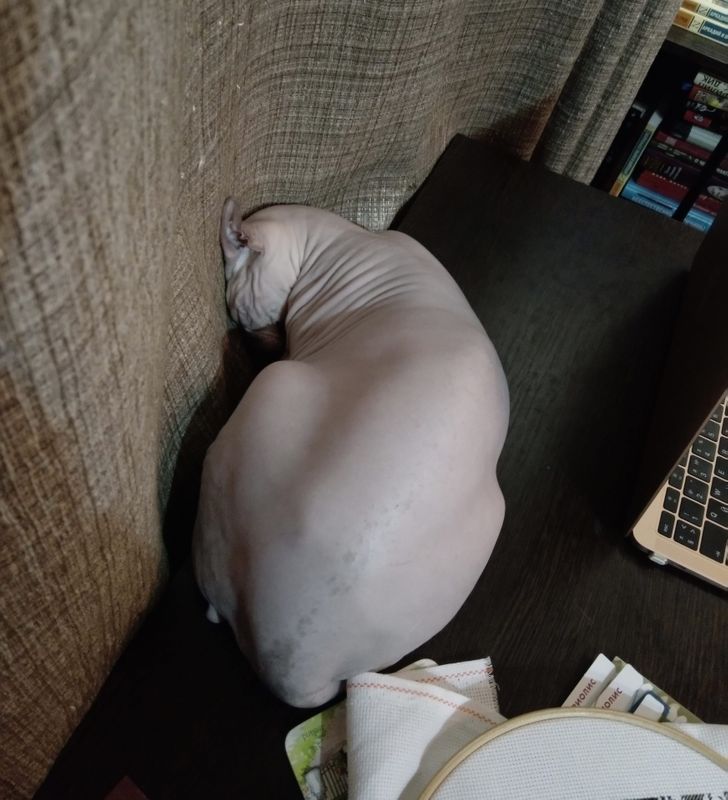 Кот упирается головой