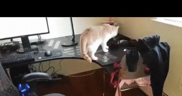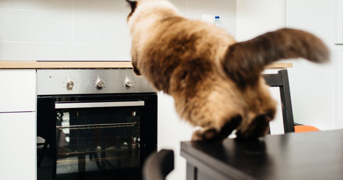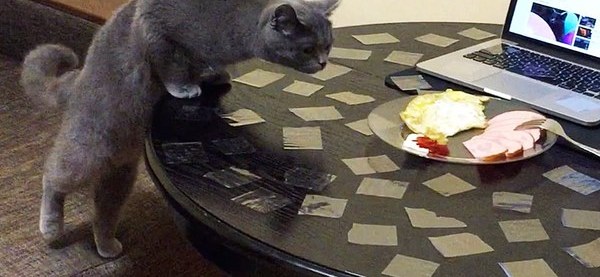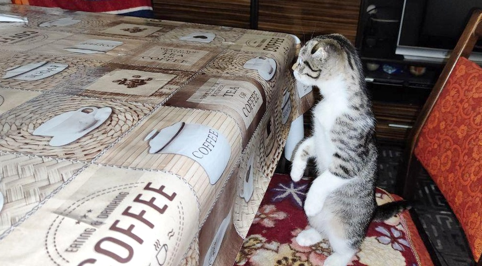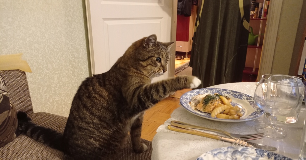 Кот залазит на стол