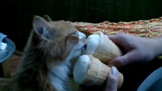 Котам дают мороженое