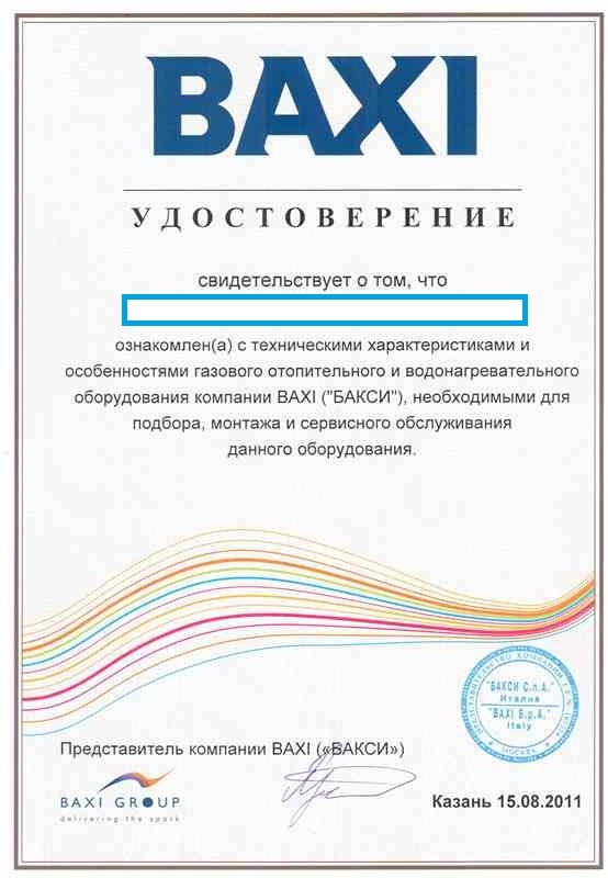 Котел baxi сертификат
