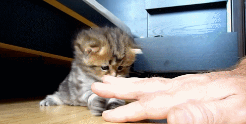 Котенок нападает на руки